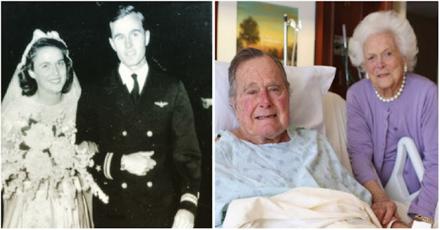 1945, George H.W. Bush wed Barbara Pierce. They tied the knot at the First